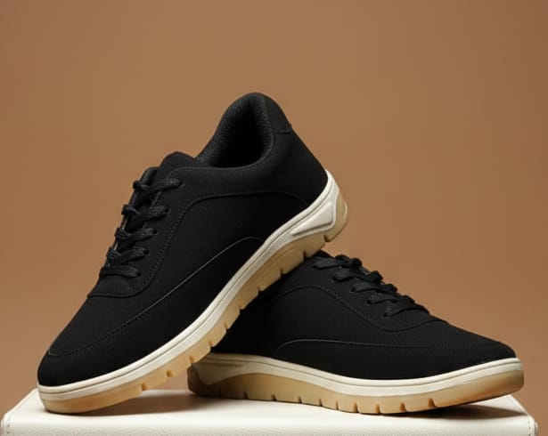Men’s solid( black) colour lace up trp rubber sool sneakers.